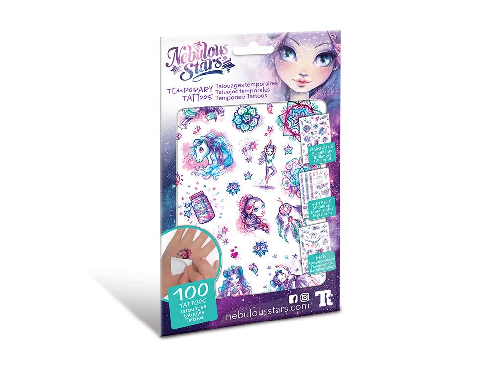 100 ks tetovačiek, metalické, svietiace v tme, trblietavé Čaká ťa párty s kamarátkami alebo chceš byť neprehliadnuteľná v škole? Ozdôb svoje telo magickým tetovaním Nebulous Stars! Postupuj podľa návodu: nastrihajte odlepte ochrannú fóliu aplikuj navlhči a pridrž na tele 30 sekúnd Odstránenie tetovania: teplou vodou s malým množstvom mydla alebo menším množstvom alkoholu pomaž tetovanie, počkaj 10 sekúnd a potom jemne setri Odporúčaný vek: od 7 rokov