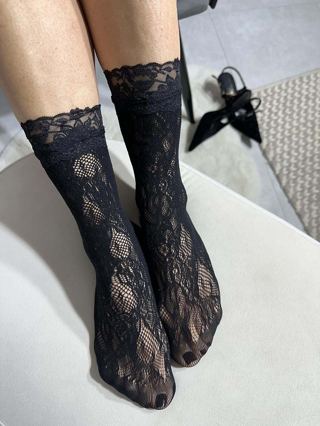 Dámske ponožky - mäkký, ažurový úplet - rebrovaná čipka - jemné zosilnenie na špičke Zloženie: 88 % polyamid, 12 % elastan