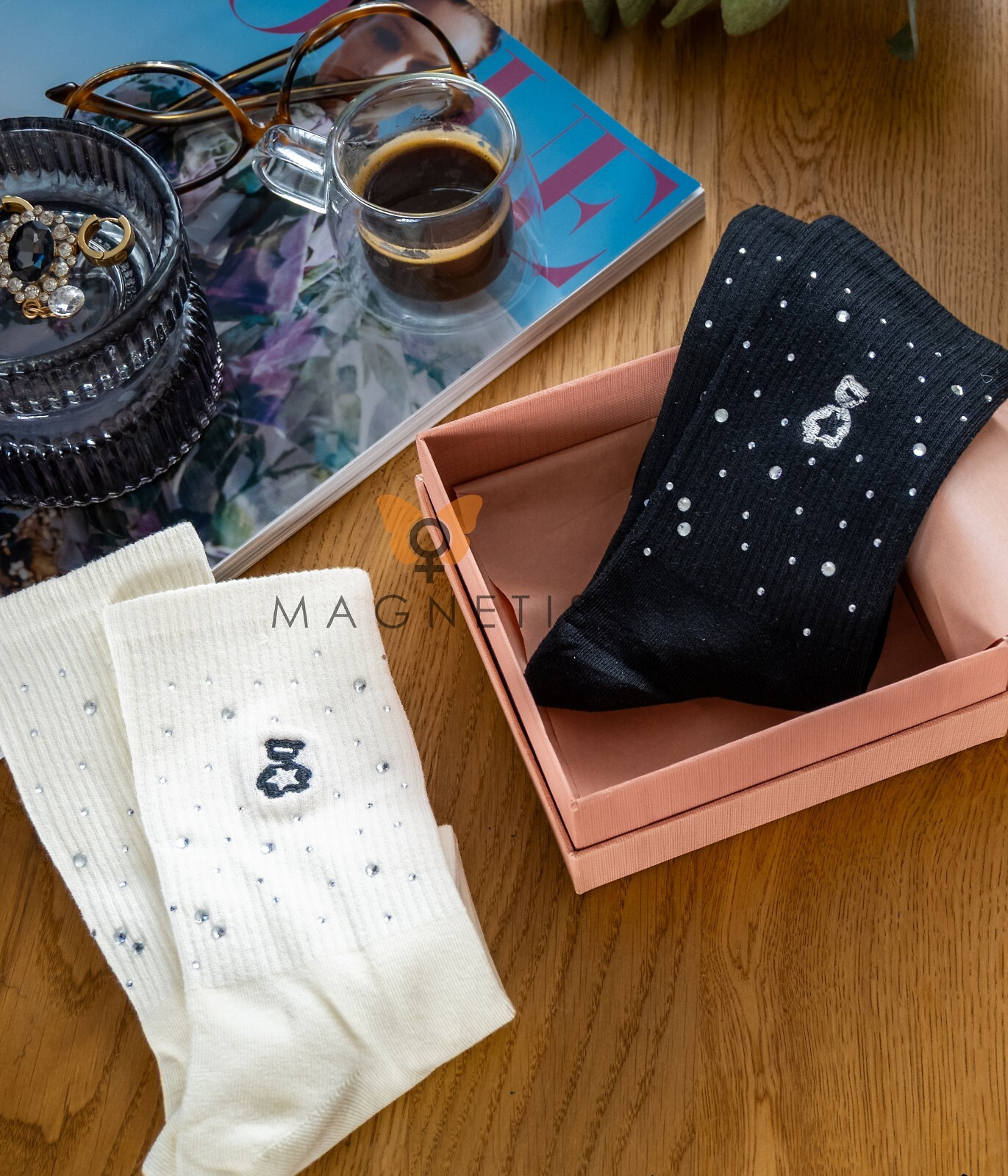 Dámske módne ponožky - mäkká pletenina - zvršok zdobený trblietavými kamienkami a výšivkou Zloženie: 80 % bavlna, 5 % elastan, 15 % polyester