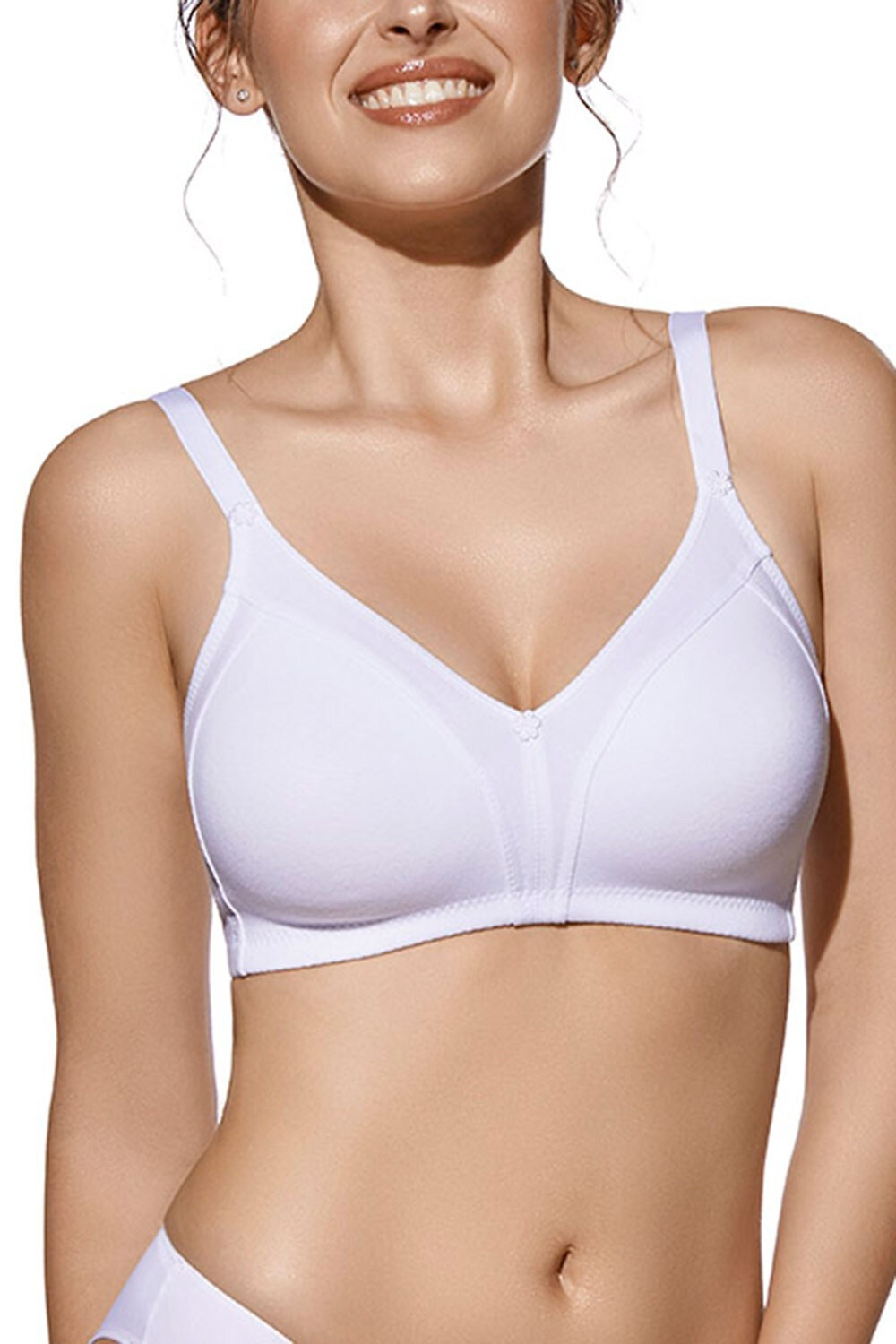 Klasická mäkká podprsenka - košíčky bez kostice - elastická tkanina s vysokým obsahom bavlny - hladké košíčky, neviditeľné pod oblečením - vyššia podprsenka poskytuje stabilnú oporu poprsiu - nastaviteľné, neodnímateľné ramienka - široké štvorcestné zapínanie na tri háčiky - pohodlný strih, ideálny na každodenné nosenie Zloženie: 47 % polyamid, 42 % bavlna, 11 % elastan