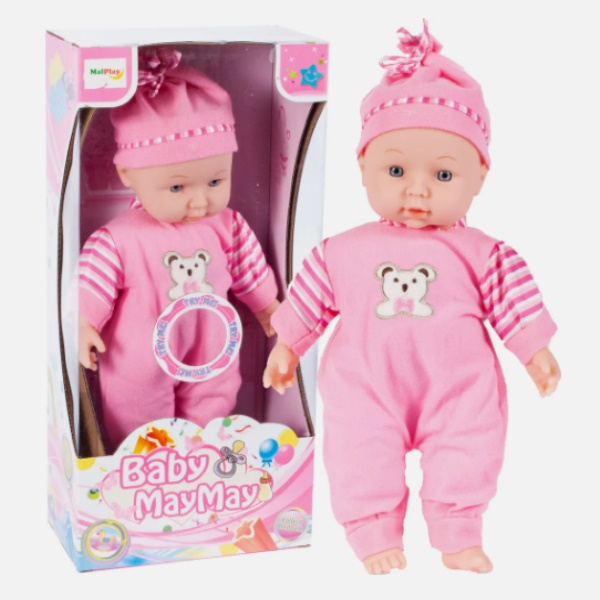 Mäkká bábätková bábika s výškou 34 cm, oblečená v ružovom dupačkovom sete. Bábika vie rozprávať, plakať aj smiať sa, čo deťom vytvára realistický pocit starostlivosti o bábätko. Súčasťou balenia sú aj batérie.