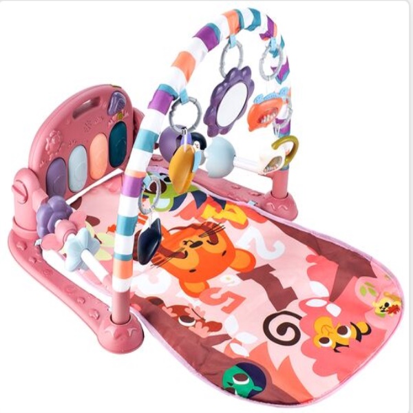 Interaktívna hracia podložka s ružovým pianom ponúka bezpečné miesto na hranie, podporuje motoriku a zabaví bábätko svetlami aj zvukmi. Súčasťou sú závesné hračky, zrkadlo a nožné piano, ktoré reaguje na každý dotyk. Ideálne od prvých mesiacov života.