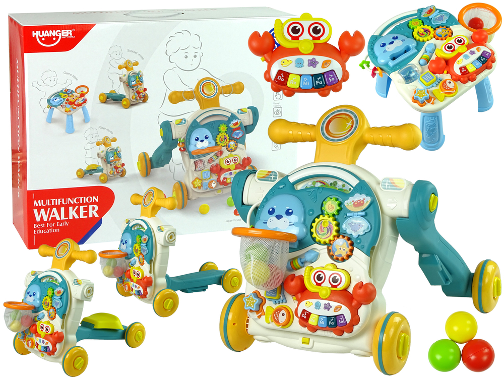Veľkou výhodou hračky je, že ju možno používať štyrmi rôznymi spôsobmi. Batoľa sa môže rozhodnúť, čo si vybrať. Môže si začať hrať so samotným klavírom, použitý výukový stolček, možnosťou je tiež jazda na bicykli a alebo jazda na kolobežke, ktorá podporuje učenie chôdze. Bezpečná a protišmyková kolieska. Výukové chodítko s interaktívnou zvukovou tabuľou sa veľmi ľahko používa.