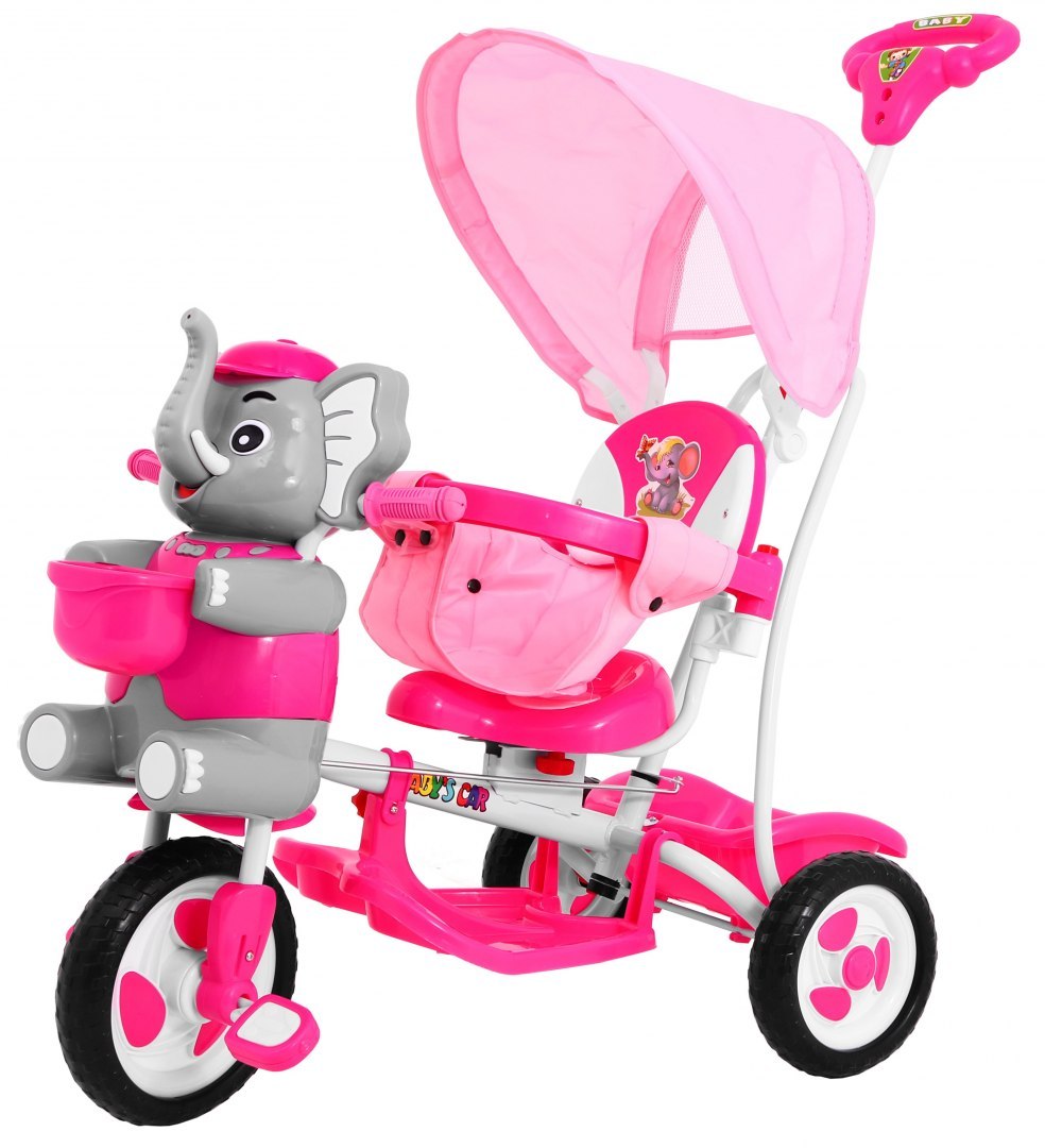 Detská trojkolka s hlavou slona v modrej / ružovej farbe bude pre vašu ratolesť hitom. Táto trojkolka je vhodná pre deti vo veku 1-5 rokov.