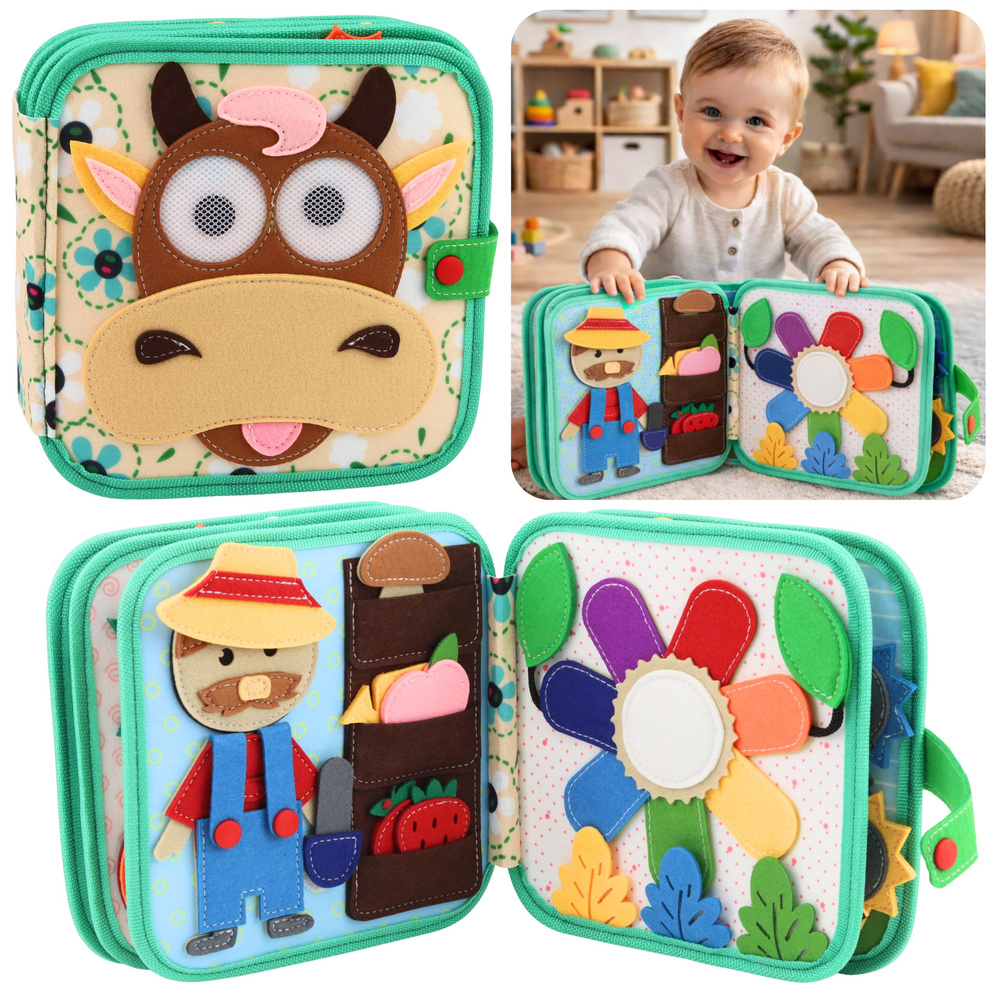 Knižka obsahuje rôzne interaktívne prvky z mäkkého filcu, ktoré možno premiestňovať, priraďovať a kombinovať. Dieťa si tak precvičuje koordináciu ruka-oko, logické myslenie aj sústredenie. Motív vidieckeho prostredia a domácich zvierat navyše rozširuje vedomosti dieťaťa a podporuje jeho kreativitu pri vytváraní vlastných príbehov.