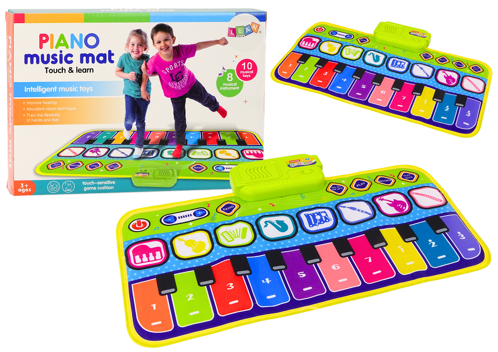 Interaktívne klávesy rozmiestnené na podložke zapájajú deti do pohybu, čo podporuje rozvoj koordinácie pohybov a motoriky. Deti musia šliapať alebo stlačiť zodpovedajúce pole, čo prirodzene napomáha rozvoju ich motorických schopností a zručnosti presného pohybu.