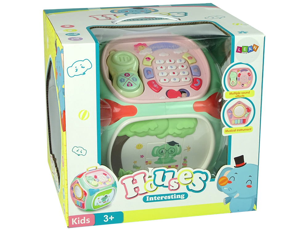 Interaktívny domček povzbudí každé dieťa k zábave. Každá stena multifunkčného sedemhranu má inú farbu a funkcie.