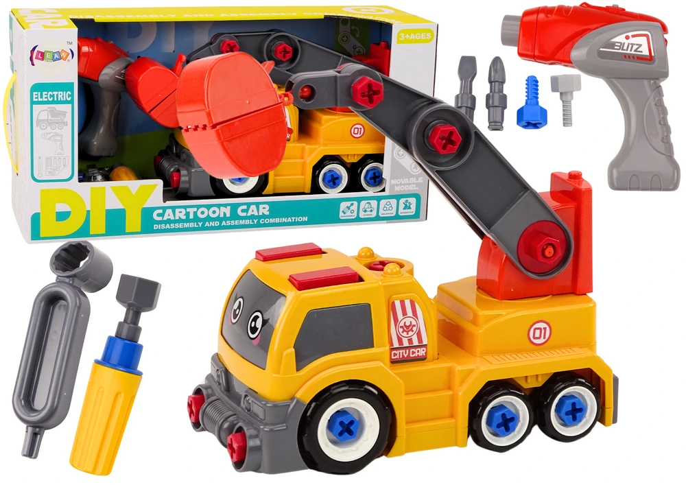 Priložená sada nástrojov ako vŕtačka, skrutkovač, kľúč a tri výmenné koncovky, tvoria neoddeliteľnú súčasť tejto hračky, umožňujúcu deťom samostatné rozmontovanie a spätné zostavenie vozidla. Vďaka tomu sa deti nielen bavia, ale tiež sa učia, ako nákladné auto funguje, a zároveň rozvíjajú svoje manuálne zručnosti, sústredenie a kreativitu.