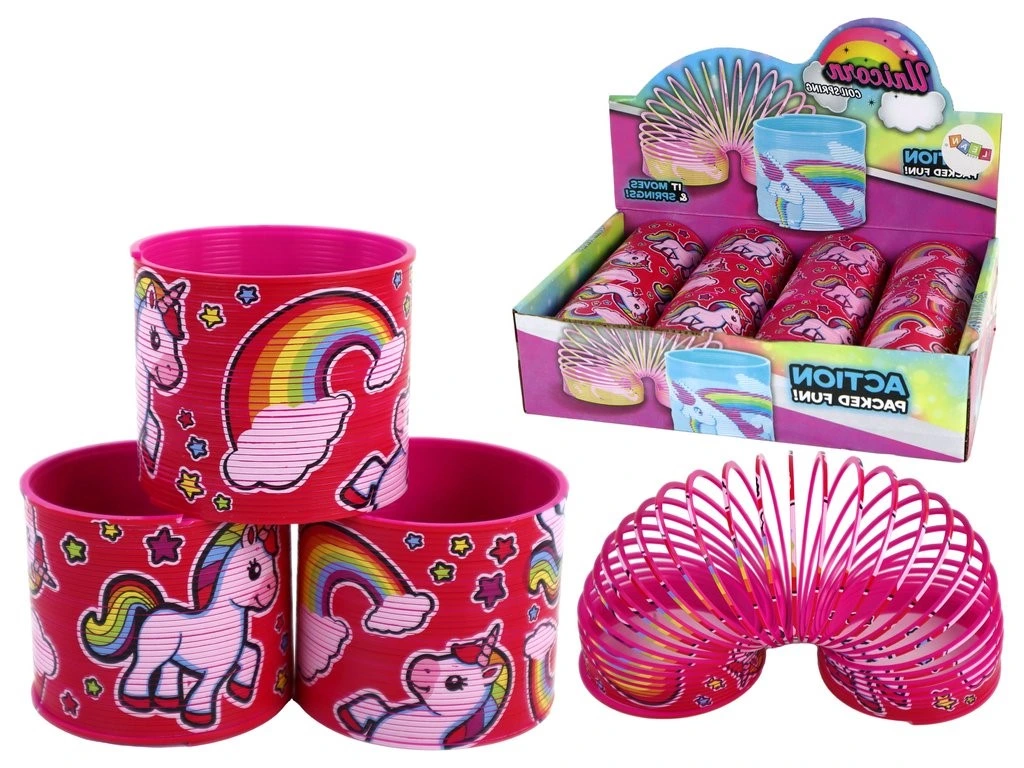 Predstavujeme kultovú ružovú pružinku s roztomilým motívom jednorožca a dúhy, v kompaktnej veľkosti 6 cm .
