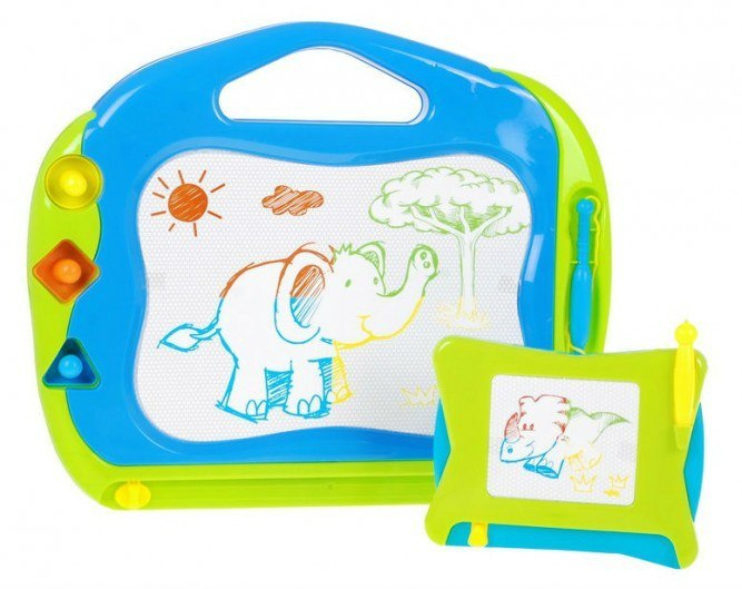 Magnetická tabuľa, ktorá poteší všetky malé maliara. Kreslením deti rozvíja motoriku rúk, svoju predstavivosť a kreativitu. Na ľavej strane sa nachádza 3 pečiatky rôznych tvarov (kruh, štvorec, trojuholník). Pod kresliace oblasťou je posuvník, ktorým zmažete výkres a deti môžu začať znovu. Plocha pre kreslenie má vstavané 4 farby pre kreslenie (červená, zelená, modrá a žltá). H Rack je vyrobená z veľmi kvalitného plastu vo veselých živých farbách. Kreslenie s touto tabuľkou je bezpečné a hlavne čisté. Nehrozí počmárané steny alebo vyliata farba na podlahe.
