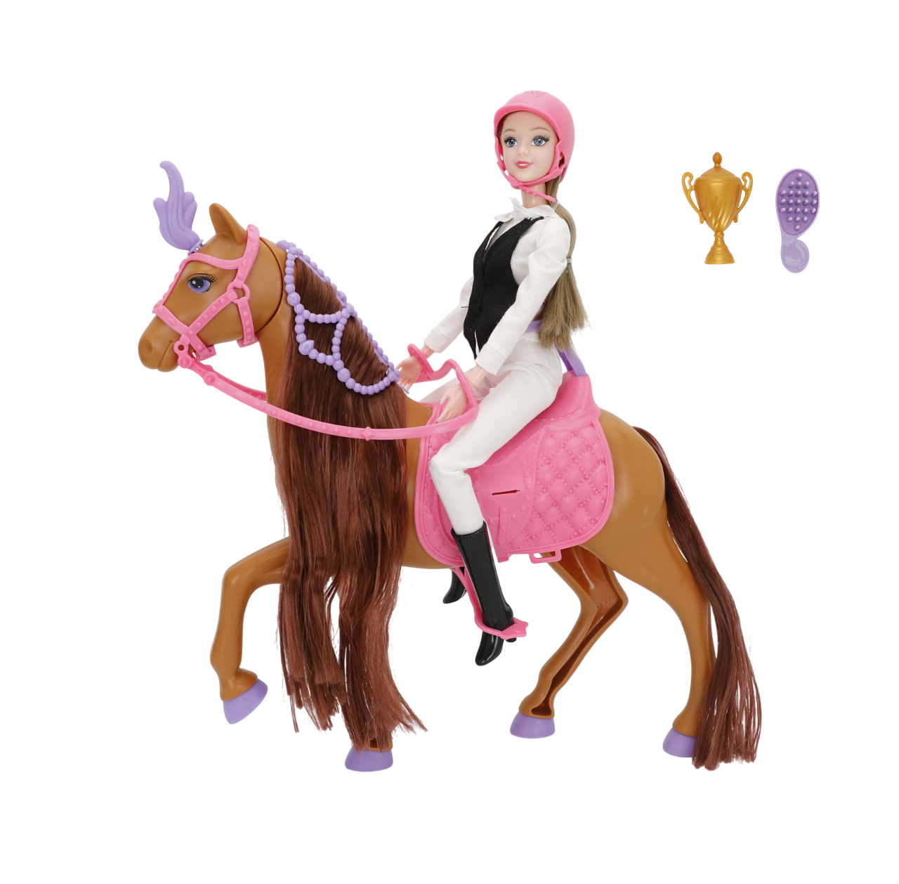 Vyber sa na jazdecké preteky s bábikou Sashou a jej elegantným koňom. Bábika je oblečená do štýlového jazdeckého oblečenia s prilbou a jej kôň má krásnu hrivu ozdobenú ružovým postrojom. Vďaka priloženému hrebeňu môžeš hrivu koňa česať a zdobiť podľa svojej fantázie. Nechýba ani trofej pre víťazku pretekov, ktorá urobí hru ešte zábavnejšou. Hračka je vhodná pre deti od 3 rokov