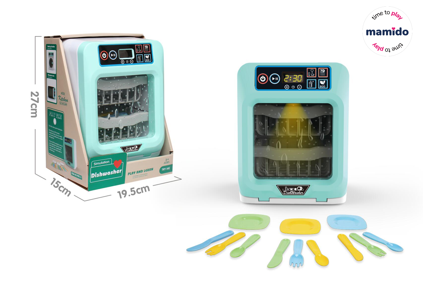 Súčasťou je sada tanierikov, lyžičiek aj vidličiek, takže je možné umývanie ihneď vyskúšať. Ideálna hračka pre malé kuchárky a kuchárov, podporujúca kreatívne hranie a predstavivosť. Hračka je napájaná tromi batériami 1,5V AA. Hračka je vhodná pre deti od 3 rokov.