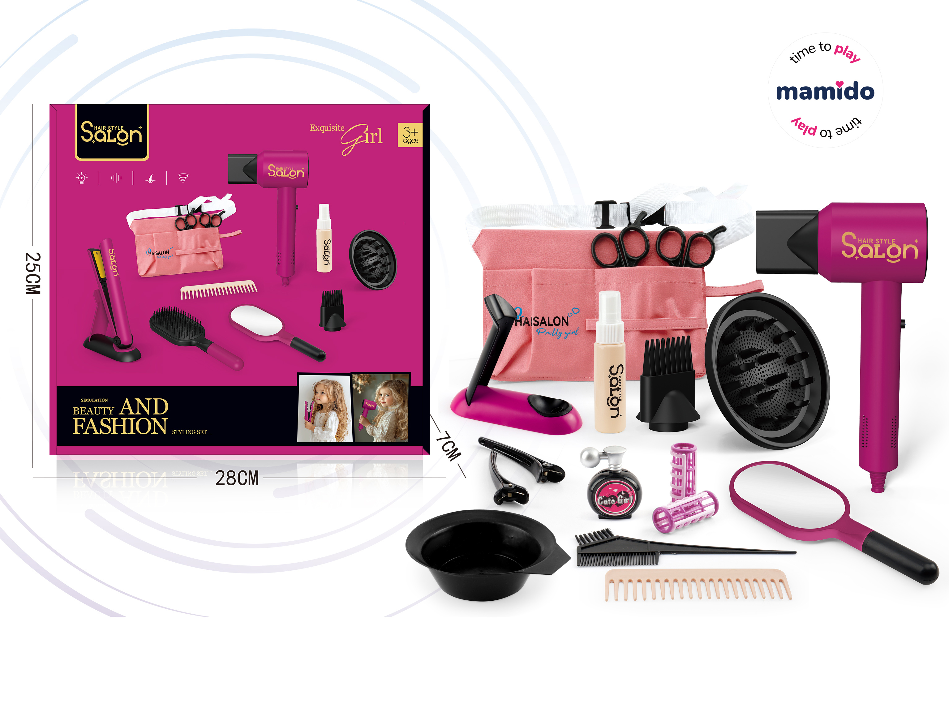 Tento ružový kadernícky set pre deti ponúka všetko, čo malá stylistka potrebuje na vytvorenie dokonalého účesu. Obsahuje elektrický fén, žehličku, hrebene, nožnice a mnoho ďalších doplnkov, ktoré zaručia hodiny kreatívnej zábavy. Hračka podporuje fantáziu, jemnú motoriku aj sociálnu hru.