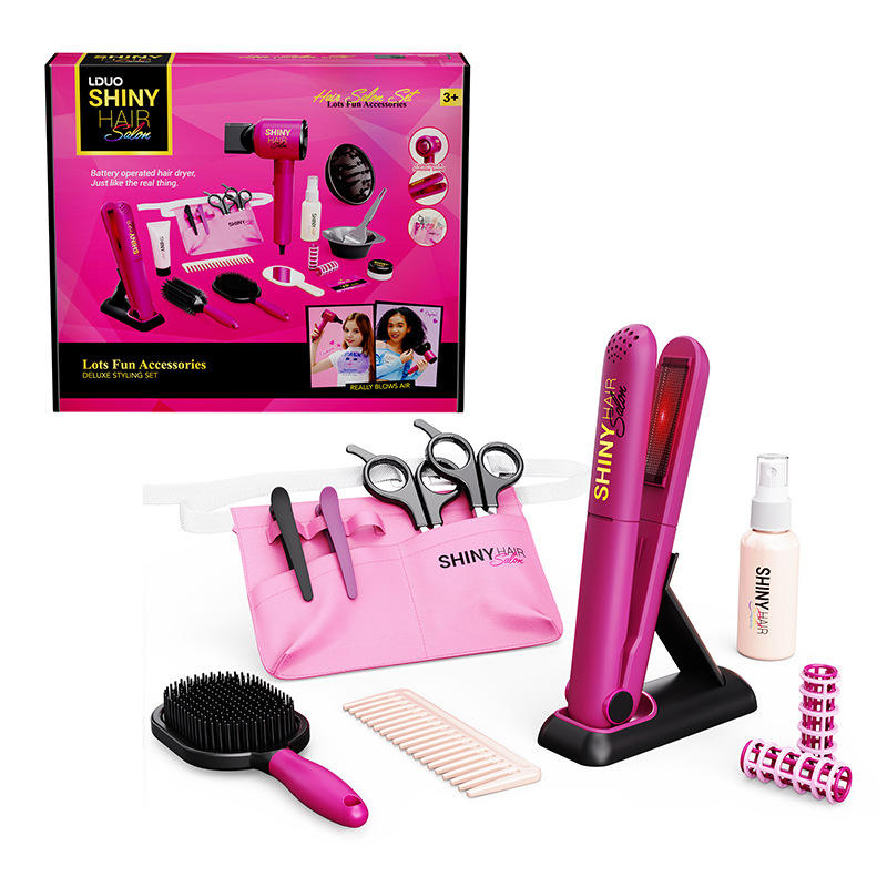 Staň sa skutočnou kaderníčkou s kompletnou súpravou Shiny Hair Salon! Táto luxusná stylingová súprava prináša realistický zážitok zo salónu krásy – súčasťou je funkčný fén na batérie, ktorý fúka vzduch, a žehlička na vlasy so svetelným efektom. Vďaka bohatej výbave môžu deti vytvárať nekonečné účesy a precvičovať svoju kreativitu aj jemnú motoriku.