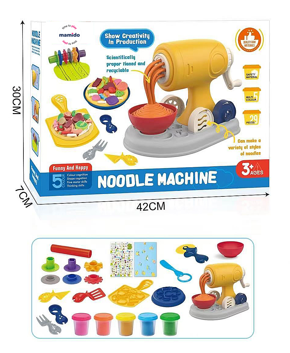 Zábavná detská sada na výrobu cestovín z plastelíny umožní malým kuchárom vytvárať farebné rezance, špagety, ravioli aj ďalšie špeciality. Súčasťou balenia je výrobník cestovín, formičky, nástroje na tvarovanie a niekoľko kelímkov farebnej plastelíny. Hračka rozvíja jemnú motoriku, kreativitu a predstavivosť detí a prináša hodiny kreatívnej zábavy.