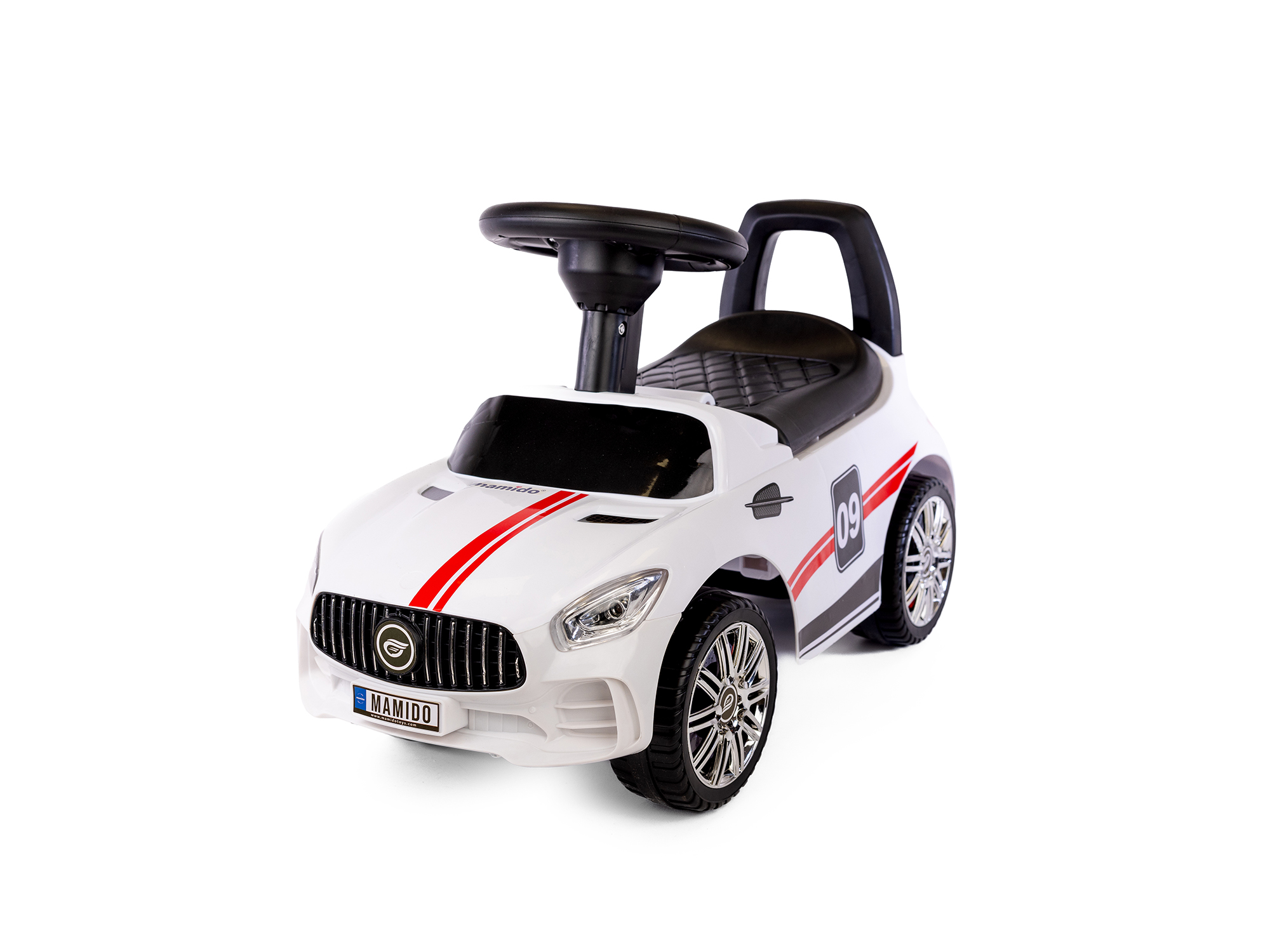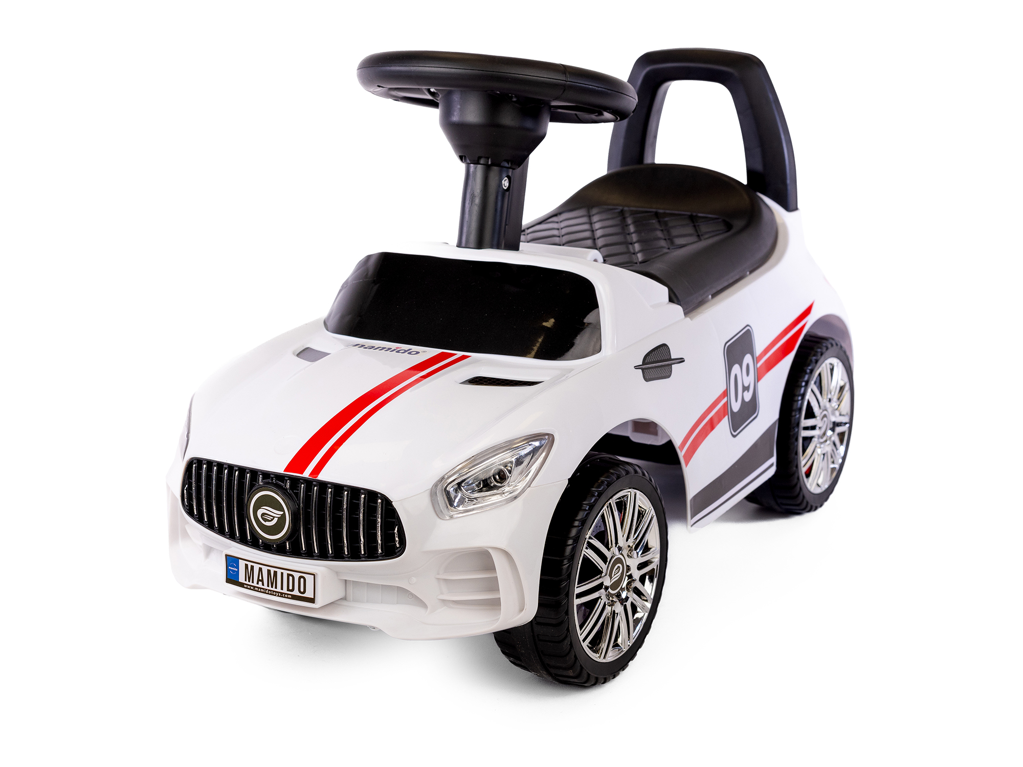 Biele odrážadlo je z veľmi ľahkej konštrukcie, čo uľahčuje riadiť. Vo veľkej sedačke je úložný priestor pre malé predmety dieťaťa, napríklad hračky, ktoré si chce vziať so sebou na prechádzku. Pohodlné operadlo pripevnené k sedadlu zaistí, že si batoľa pri hraní udržuje rovné držanie tela a tiež sa cíti pohodlne. Veľké, široké kolesá vám umožnia zvoliť rôzne povrchy, vďaka ktorým bude auto jazdiť doma aj na záhrade. Nosnosť je 30 kg, a preto bude určite slúžiť vášmu dieťaťu po dlhú dobu.