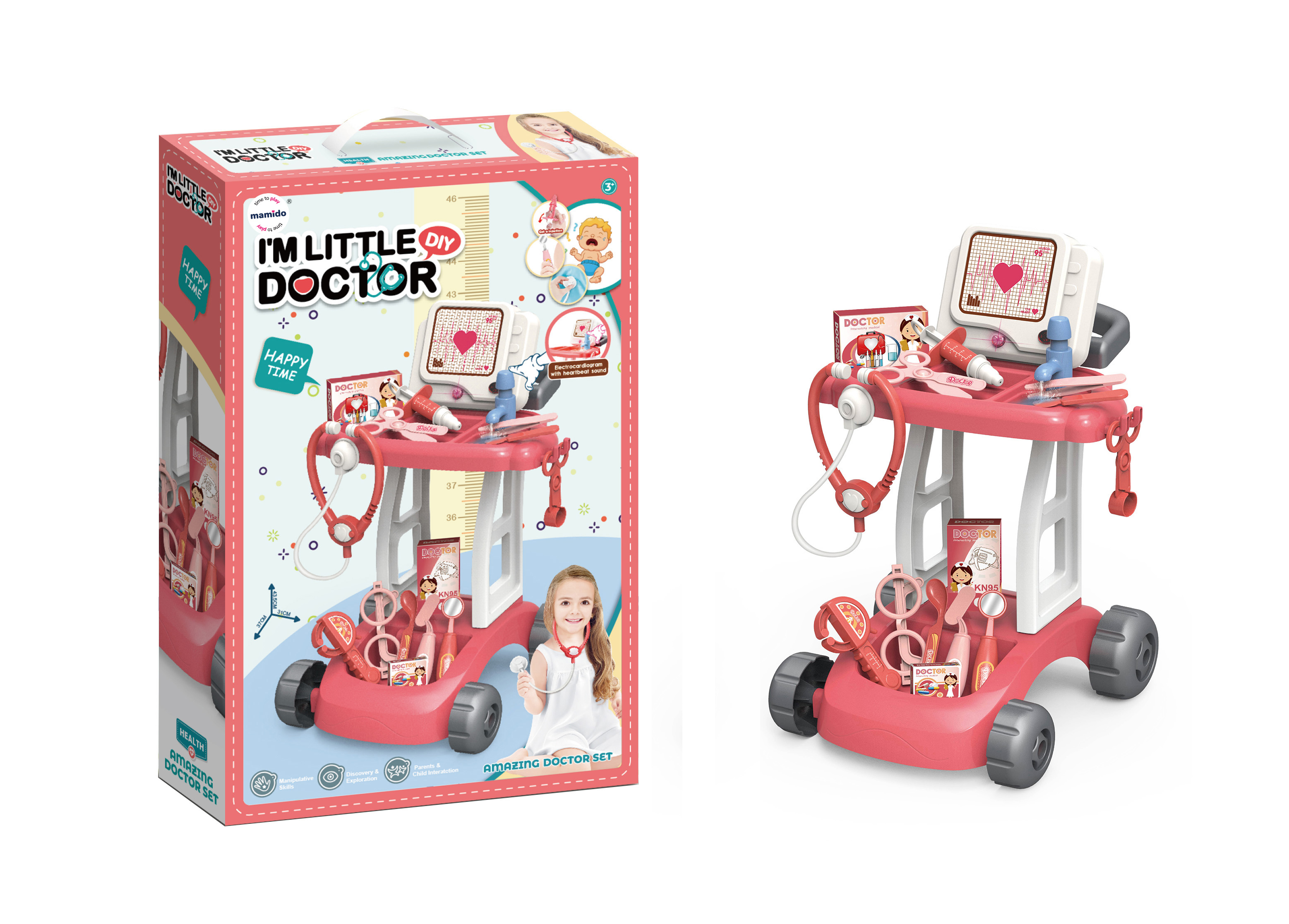 Táto lekárska súprava s vozíkom prináša realistické prvky, ako je monitor EKG s tlkotom srdca, stetoskop, injekcia, okuliare alebo teplomer. Vozík je vybavený kolieskami, takže malý doktor môže ľahko jazdiť od pacienta k pacientovi. Skvelá hračka, ktorá podporuje fantáziu, empatiu a sociálne zručnosti detí pri hraní rolí.