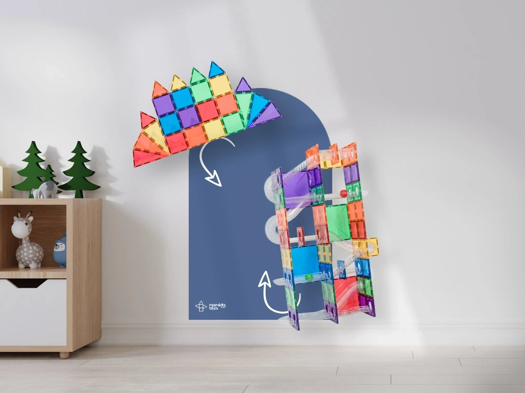 Magnetická tapeta Mamido Tiles prinesie deťom ešte viac zábavy, tvorenia a učenia vďaka magnetickej sile a jednoduchej inštalácii. Stačí ju nalepiť na hladkú stenu a v okamihu vznikne interaktívny priestor pre magnetky, kreslenie kriedou, maľovanie umývateľnými farbami aj písanie fixkou na tabuľu.