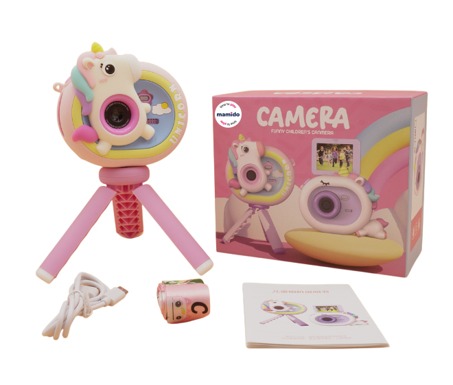 Doprajte deťom radosť z fotografovania s týmto rozkošným fotoaparátom. Vďaka jednoduchému ovládaniu, hravému dizajnu a pestrým funkciám je ideálnou voľbou pre začínajúcich fotografov. Kamera je vybavená 2,4" displejom, možnosťou natáčať video v 720p, fotiť v 48 MP, prehrávať MP3 aj hrať jednoduché hry. Súčasťou balenia je trojnožka (stojan) pre stabilné zábery a krásne efekty vďaka rámčekom a filtrom s motívom jednorožca. Odolné prevedenie s možnosťou microSD karty (do 32 GB) zabezpečí, že deti budú môcť uchovať svoje spomienky.