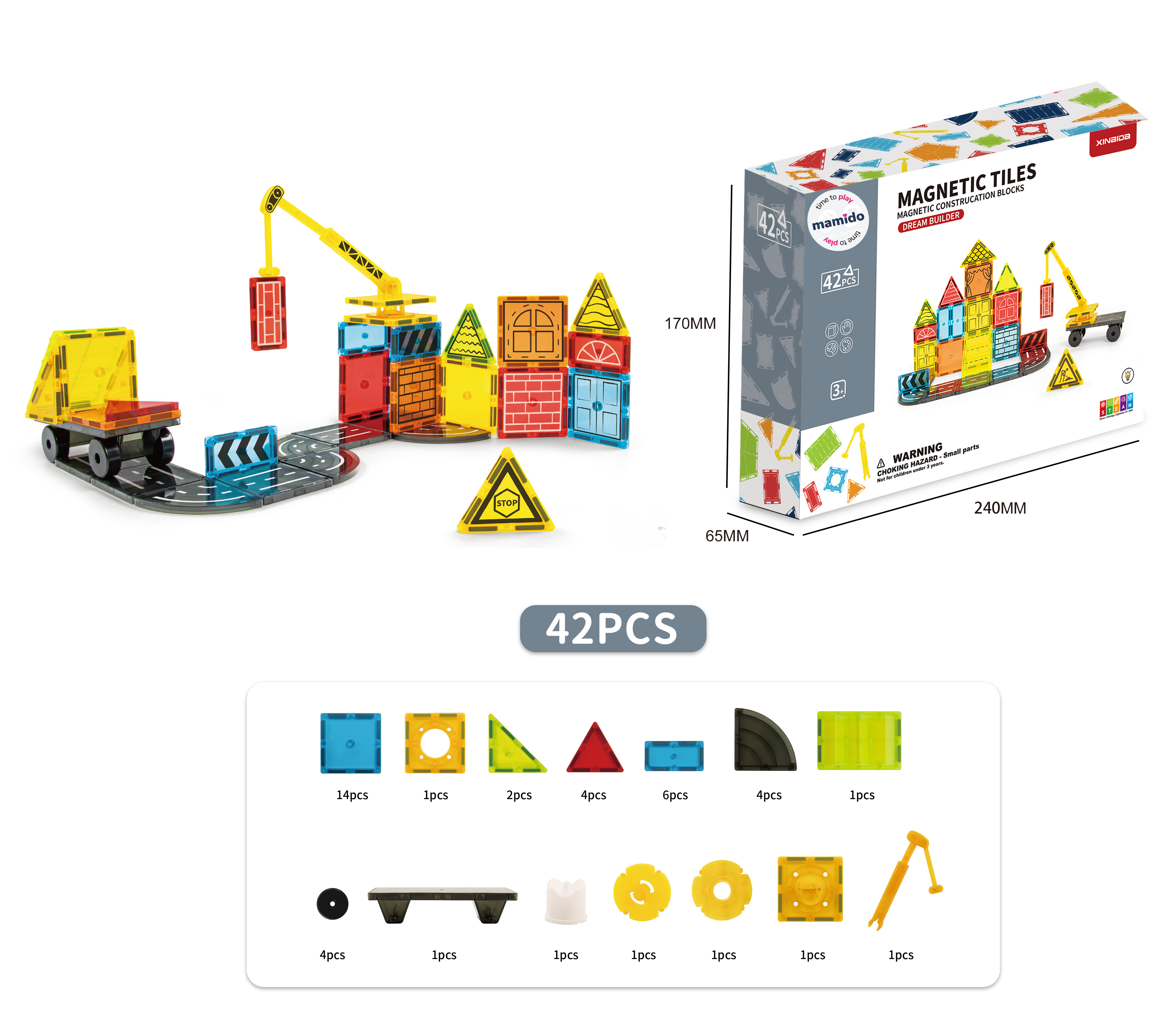 Vydaj sa do sveta dopravy a stavebníctva s originálnou magnetickou stavebnicou, ktorá sa skladá z 42 dielov. Deti si môžu postaviť celé mesto s cestami, značkami, budovami aj vozidlami. Farebné magnetické dieliky sa ľahko spájajú a umožňujú tvoriť nekonečné kombinácie od jednoduchých stavieb až po prepracované dopravné scény. Súčasťou sady sú aj autíčka s podvozkom na kolieskach, dopravné značky, žeriav a ďalšie doplnky, vďaka ktorým hra získava realistický nádych.