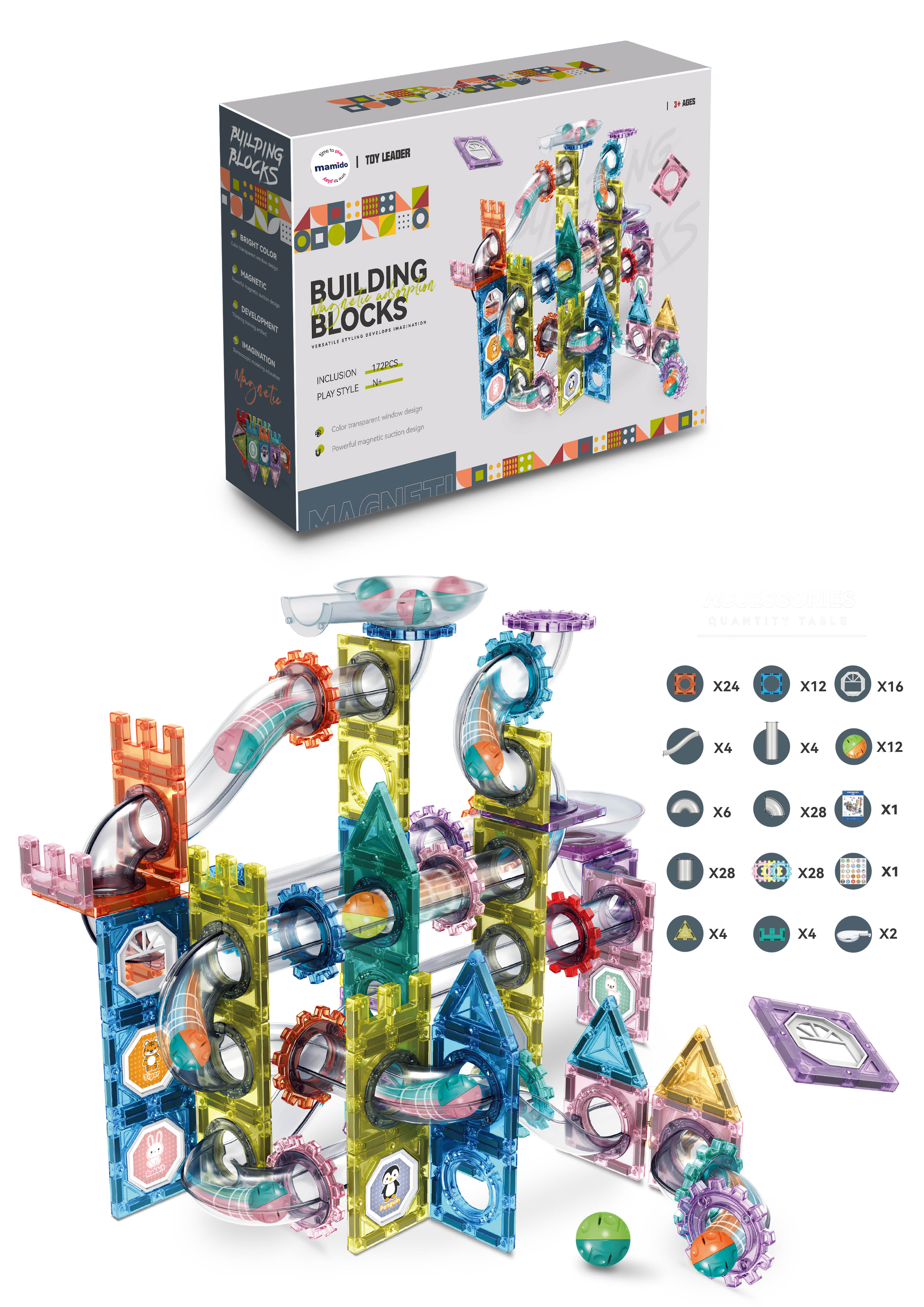 Fantastická magnetická stavebnica, ktorá spája kreatívne stavanie s dynamickou guľôčkovou dráhou! Set obsahuje 172 dielov rôznych tvarov, priehľadných tubusov, oblúkov, kolies a magnetických panelov, vďaka ktorým môžu deti vytvárať vlastné farebné konštrukcie a sledovať, ako guľôčky prechádzajú po ich originálnej trase.