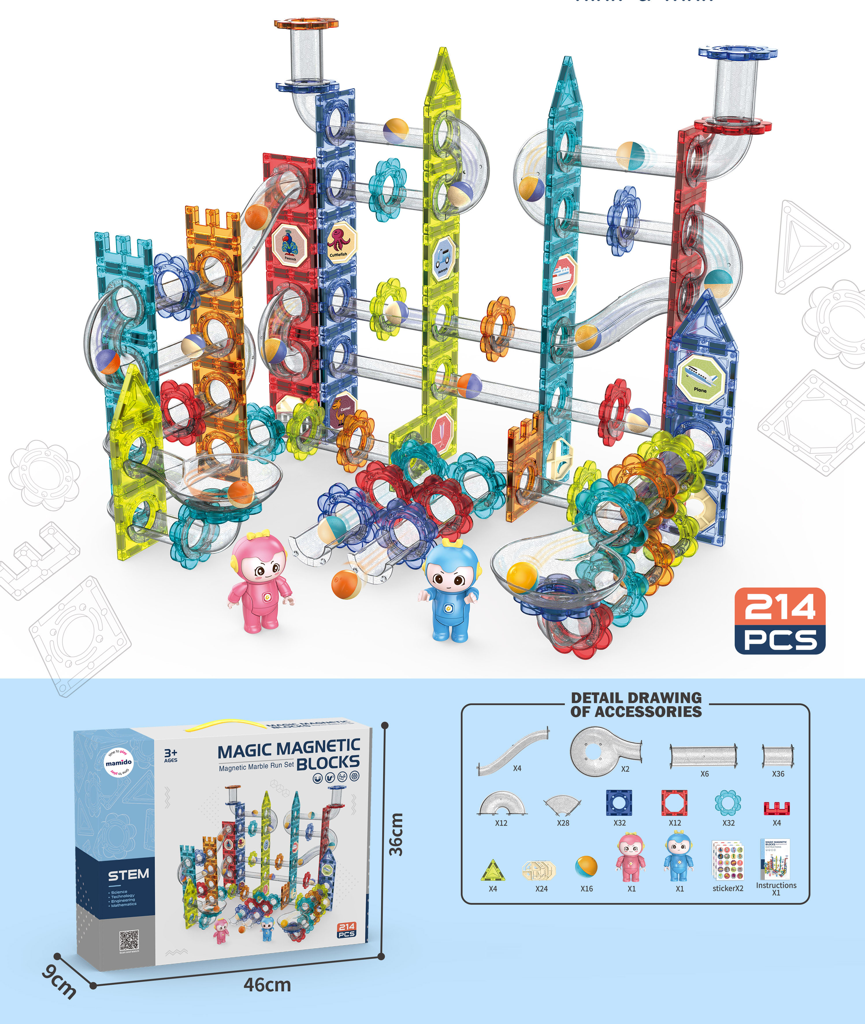 Magnetické kocky sú vynikajúcou vzdelávacou hračkou, rozvíja detskú kreativitu, učia trpezlivosti a sústredenie. V brožúre, ktorá je súčasťou sady, sú uvedené ukážky dráhy. Niektoré komponenty majú zabudované osvetlenie, aby hračka vyzerala nápadito.