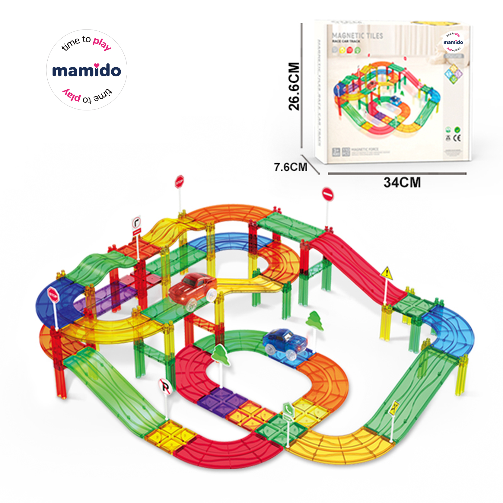 Farebná magnetická stavebnica s autodráhou ponúka deťom kreatívnu zábavu aj možnosť stavať vlastné mesto plné mostov, zákrut a križovatiek. Sada obsahuje 110 dielikov vrátane dopravných značiek, ciest, mostov a dvoch elektrických autíčok, ktoré sa samy pohybujú po postavenej trati. Vďaka jednoduchému magnetickému systému možno diely ľahko spájať a odpájať, takže deti môžu trať neustále meniť a prispôsobovať podľa svojej fantázie.
