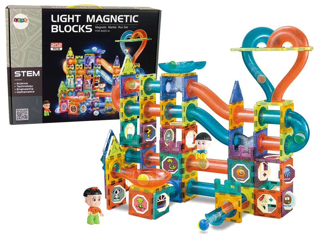 Magnetické kocky sú vynikajúcou vzdelávacou hračkou, rozvíja detskú kreativitu, učia trpezlivosti a sústredeniu. V brožúre, ktorá je súčasťou sady, sú uvedené ukážky dráhy. Niektoré komponenty majú zabudované osvetlenie, aby hračka vyzerala nápadito.