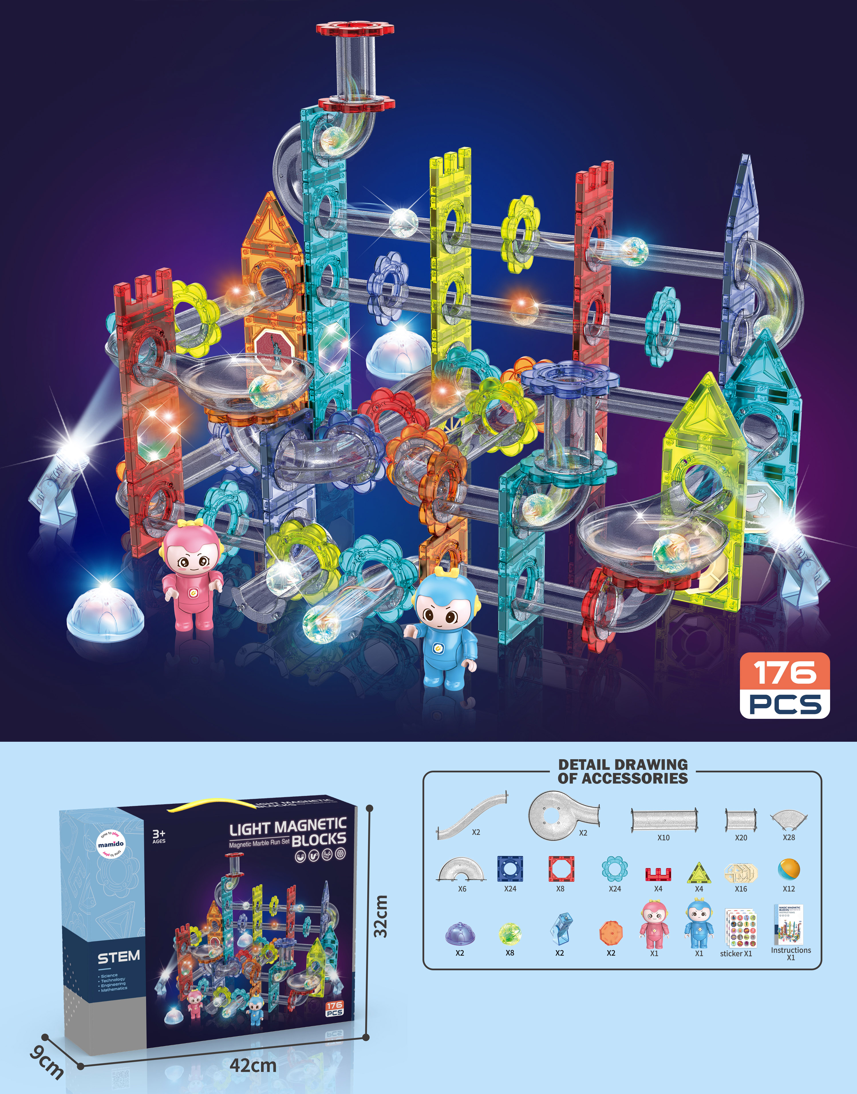 Magnetické kocky sú vynikajúcou vzdelávacou hračkou, rozvíja detskú kreativitu, učia trpezlivosti a sústredenie. V brožúre, ktorá je súčasťou sady, sú uvedené ukážky dráhy. Niektoré komponenty majú zabudované osvetlenie, aby hračka vyzerala nápadito.
