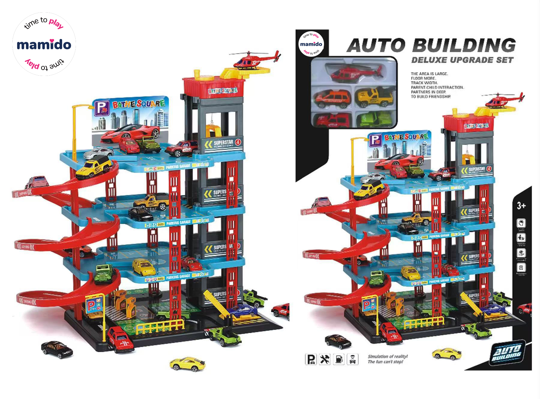 Vďaka bohatej výbave so 6 kovovými autíčkami, helikoptérou a samolepkami si deti môžu postaviť vlastné mestské parkovisko a užiť si realistickú hru plnú fantázie. Výhodou sú tiež pohyblivé výťahy a zjazdy, ktoré dodávajú hre dynamiku a zábavu.