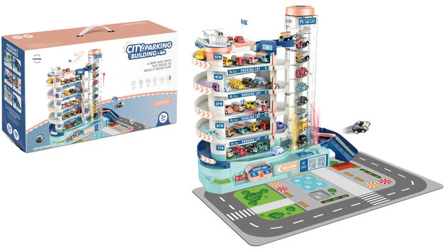 Objavte svet plný dobrodružstva a zábavy s viacúrovňovým parkoviskom, ktoré poteší každého malého vodiča. Farebné autíčkové parkovisko ponúka hneď niekoľko poschodí na parkovanie, funkčný výťah pre autá, servisnú zónu aj priestor na tankovanie. Súčasťou je aj hrací podklad s cestou, ktorý deťom umožní vytvárať realistické dopravné situácie a rozvíjať ich fantáziu.
