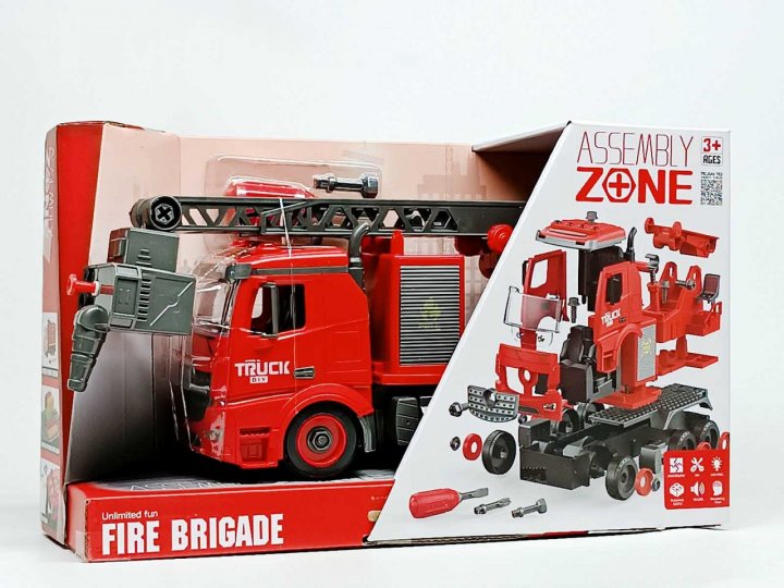 V balení nájdete : Všetko potrebné na zostavenie jednej hasičskej striekačky a sady skrutkovačov pre montáž.
