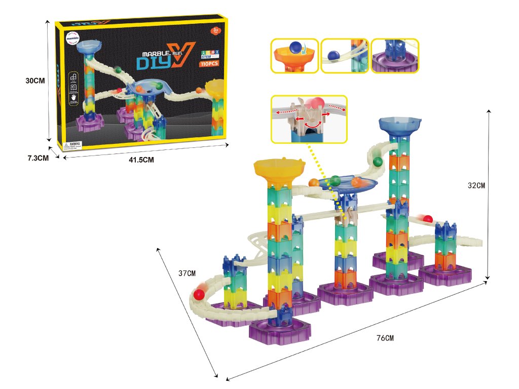 Postavte si vlastnú dobrodružnú guľôčkovú dráhu! Táto stavebnica so 110 dielmi ponúka nespočet možností, ako zostaviť zábavné trate, po ktorých sa guľôčky kotúľajú z jedného poschodia na druhé. Deti si užijú napätie, kreativitu aj radosť zo hry.
