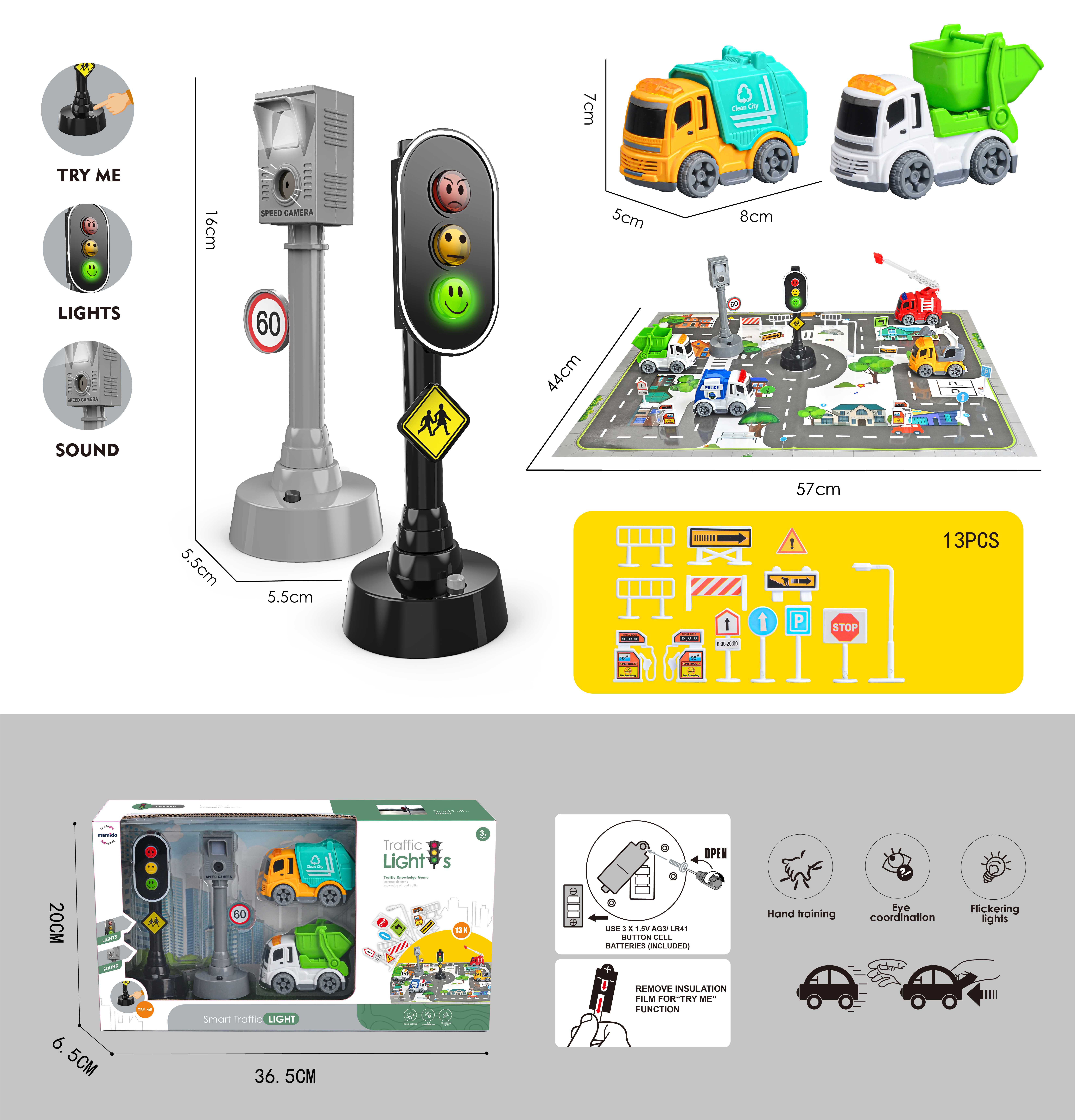 Predstavujeme sadu autíčok so svetelnou signalizáciou a dopravnými značkami. Ideálna sada na učenie pravidiel cestnej premávky a bezpečného pohybu po uliciach. Táto sada je vzdelávacia hračka, ktorá sa v budúcnosti vyplatí vášmu dieťaťu.