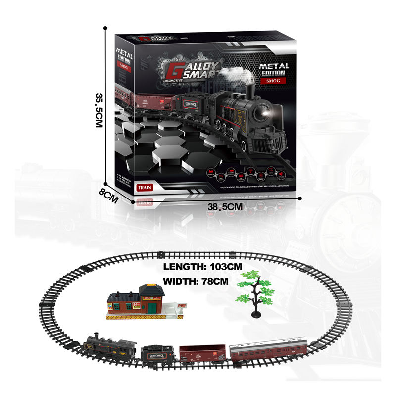 Vláčik s parnou lokomotívou a realistickými zvukmi. Lokomotíva za jazdy vypúšťa dym z komína (aby bola vypúšťaná para, najskôr kvapnite vodu do lokomotívy, v sade je priložené kvapkadlo). Počas jazdy sa rozsvieti predné svetlo lokomotívy. Dráha má tvar elipsy s rozmermi 143 x 106 cm.