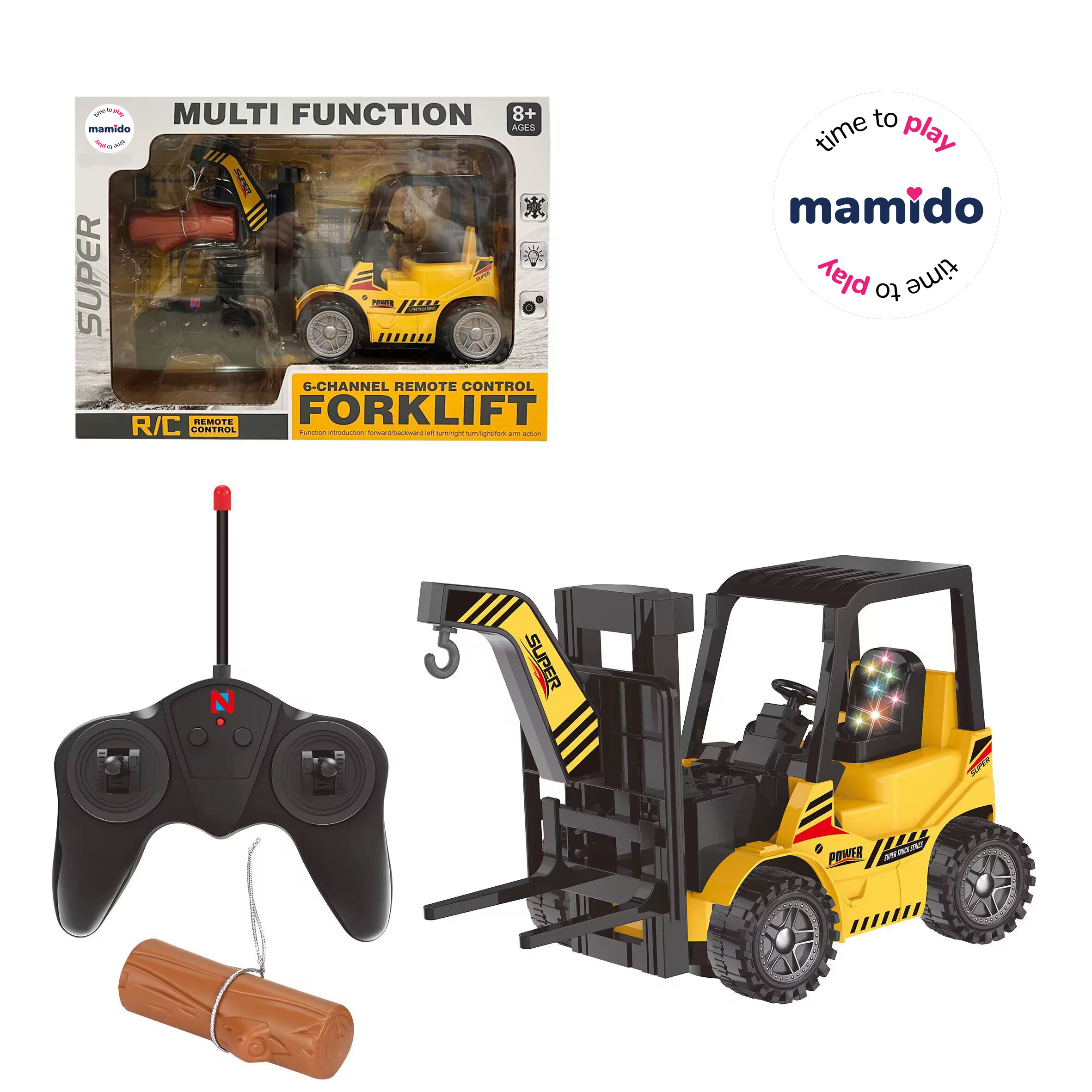 Vysokozdvižný vozík na diaľkové ovládanie s realistickým ovládaním a funkčným zdvihom vidlíc umožňuje jazdu vpred / vzad, zatáčanie vľavo aj vpravo a zdvíhanie či spúšťanie nákladu. Súčasťou je tiež hákový nástavec a náklad (kmeň), vďaka ktorému možno trénovať nakladanie ešte zábavnejšie. Model je vybavený svetelnými efektmi a dobíjateľnou batériou s USB nabíjacím káblom. Ovládanie je jednoduché a hračka je vhodná pre deti od 8 rokov.