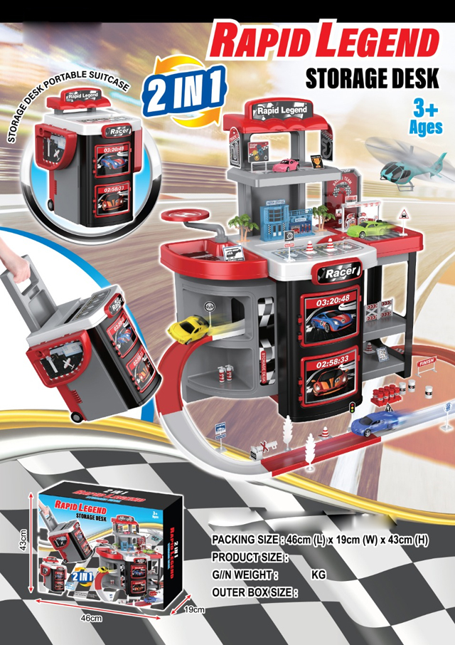 Závodná stanica Rapid Legend ponúka bohaté herné prostredie: viacposchodovú garáž, výjazdovú rampu, servisnú stanicu aj pretekársku trať. Set sa po zatlačení a zacvaknutí premení na kompaktný kufrík s výsuvným držadlom. Hračka je ideálna pre malých fanúšikov áut a rýchlosti.
