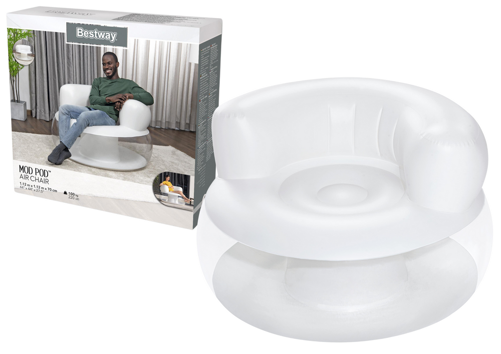 Nafukovacie kreslo Bestway je pohodlné a štýlové sedadlo ideálne pre vnútorné aj vonkajšie použitie. Vďaka svojmu ergonomickému dizajnu a flokovanému povrchu poskytuje pohodlný odpočinok, zatiaľ čo robustné materiály zaisťujú odolnosť a pohodlie. Je vyrobené z odolného PVC, ktoré zaisťuje dlhodobé používanie a pohodlie pri sedení.