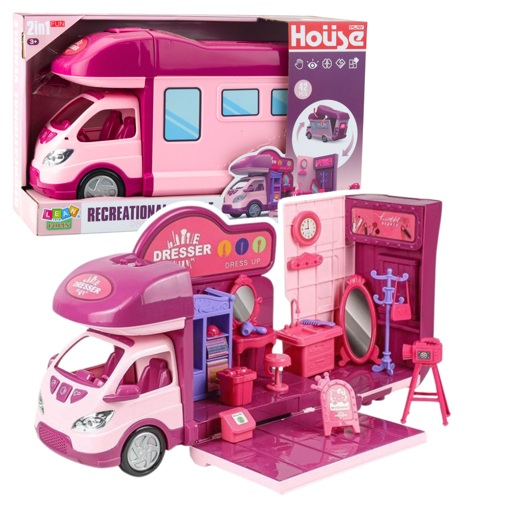 Rozkladací obytný voz snov je neobyčajná hračka, ktorá umožňuje deťom preniesť sa do sveta cestovania, dobrodružstva a kreatívnej hry. Veľké ružovofialové auto sa po rozložení premení na bohato zariadený domček pre bábiky, ktorý ponúka skvelé príležitosti na vytváranie vlastných príbehov a scenárov hry.