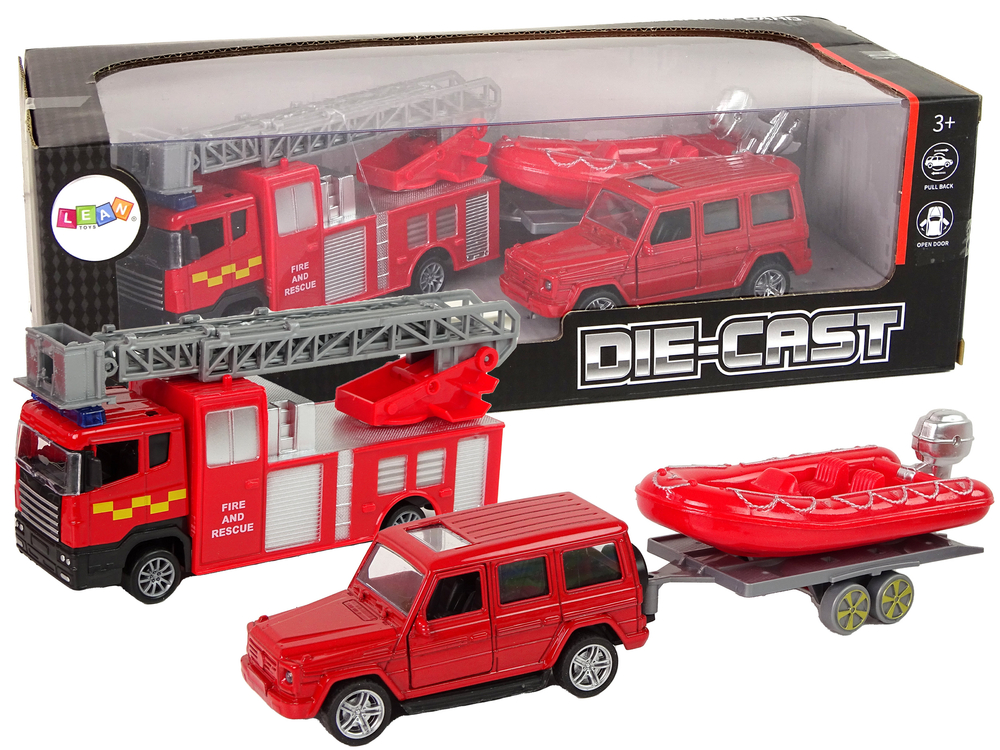 Sada Vozidiel Hasičský Tím Vodná Motorka Džíp Červený