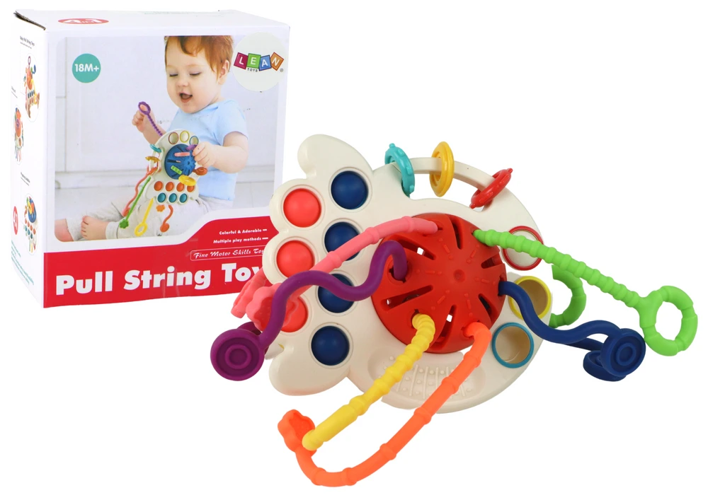 Zábavná senzorická hračka umožňuje nielen tešiť sa z ťahania farebných nití z jedného konca na druhý, ale aj z stláčania a posúvania bublín. Kombinuje rôzne hry, aby poskytla iný druh zábavy, zároveň rozvíja motorické schopnosti.