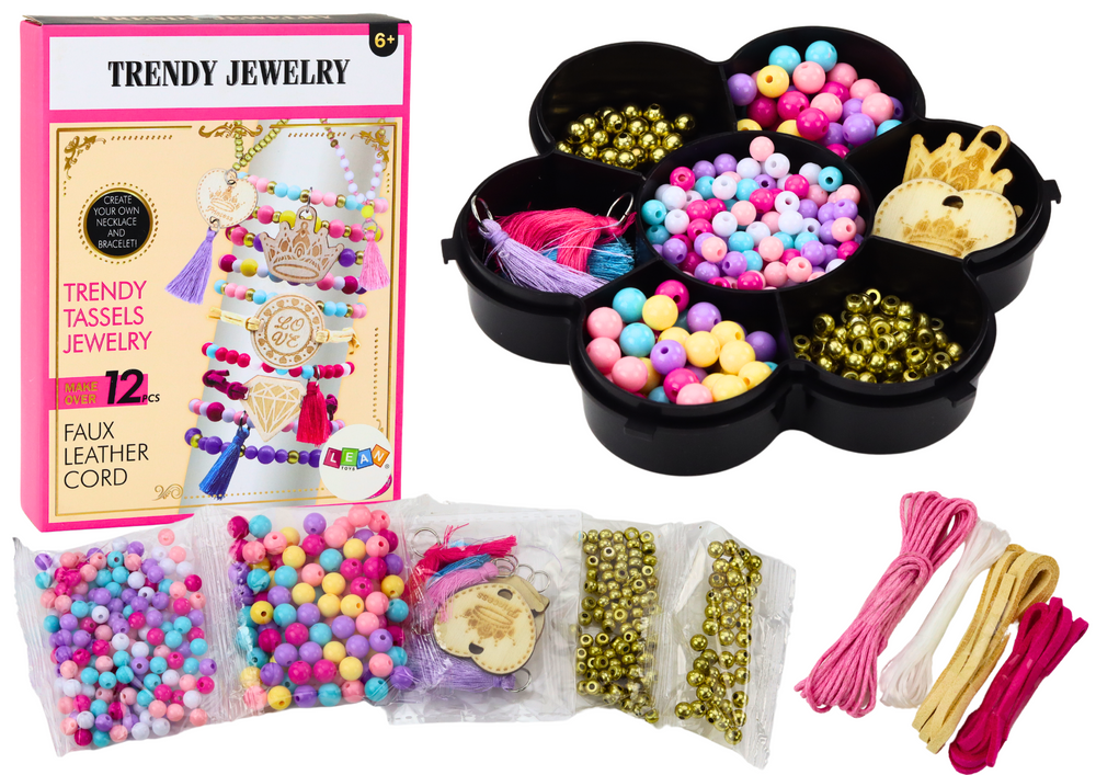 Šnúrky a vlákno, ktoré tvoria základ pre náramky, umožňujú experimentovanie s rôznymi technikami pletenia a navliekania, a podporujú tak kreativitu a precíznosť. Celý set je starostlivo zabalený v kontajneri v tvare kvety, čo nielen uľahčuje skladovanie korálikov, ale tiež pridáva náramkom kúzlo a estetiku.