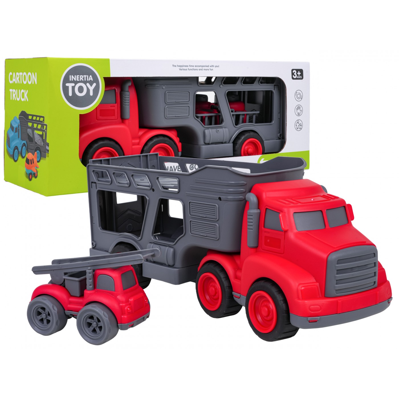 Súprava vozidiel s odťahovkou a autíčkom Hasiči pre deti od troch rokov. Súprava je vyrobená z najkvalitnejšieho plastu v žiarivých farbách. Bude to veľká zábava pre malých milovníkov stavebných vozidiel. Auto hasiči má pohyblivé kolesá s pohonom predných kolies, veľmi ľahko sa pohybuje po povrchu. Môžeme tiež zdvíhať a spúšťať rebrík.