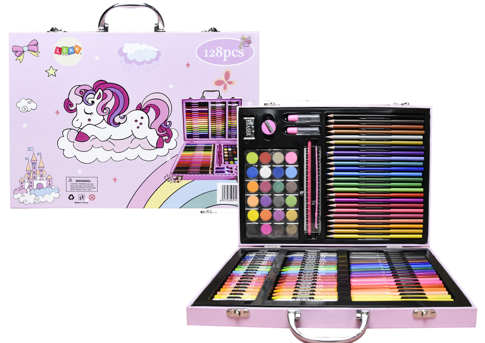 Umelecká sada v kufríku s jednorožcom Ružová 128 KS