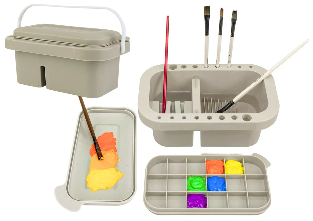 Nádoba má 16 otvorov na štetce rôznych veľkostí, umiestnených pozdĺž okraja. Tieto špeciálne otvory umožňujú pohodlné držanie štetcov vo zvislej polohe, čo uľahčuje ich vysušenie a uloženie počas práce.