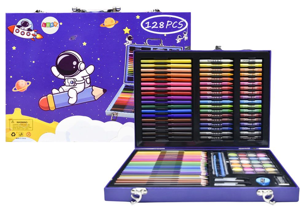 Umelecká sada s 128 prvkami je ideálny nástroj pre malých tvorcov na rozvoj kreativity a zručností. Obsahuje pastelky, farby, štetec a ďalšie pomôcky, všetko uložené v atraktívnom kufríku s motívom kozmonauta. Perfektný darček pre deti, ktoré milujú tvorenie.