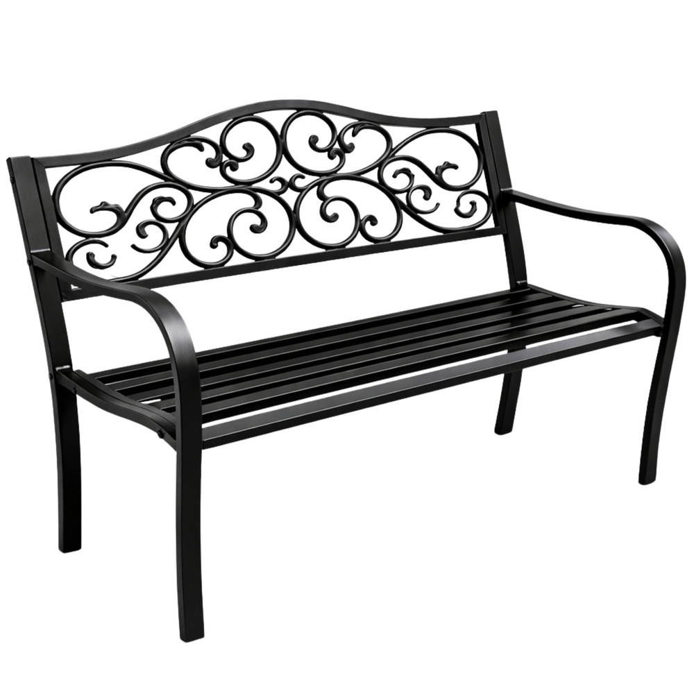Štýlová záhradná lavica s dekoratívnym operadlom je ideálnou voľbou na vytvorenie príjemného miesta na oddych v záhrade, na terase aj na balkóne. Elegantné čierne prevedenie v kombinácii s ozdobnými prvkami dodáva lavici romantický vzhľad, ktorý krásne doplní moderné aj klasické vonkajšie priestory. Vďaka odolnej kovovej konštrukcii s ochrannou epoxidovou vrstvou je lavica pripravená na každodenné použitie vonku a dlhodobo si zachová svoj vzhľad aj funkčnosť.