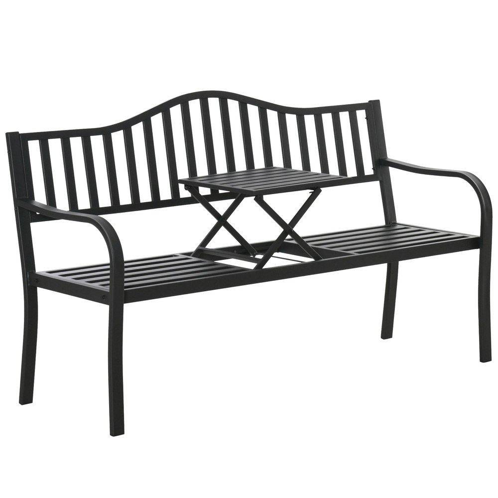 Elegantná a praktická záhradná lavica s integrovaným stolíkom je ideálnou voľbou pre pohodlný odpočinok na záhrade, terase aj balkóne. Vďaka nadčasovému dizajnu v čiernej farbe skvele zapadne do moderných aj klasických vonkajších priestorov. Pevná kovová konštrukcia zaisťuje dlhú životnosť a vysokú odolnosť voči poveternostným vplyvom, takže lavica bez problémov obstojí aj pri celoročnom vonkajšom použití. Hlavnou prednosťou je praktický výsuvný stolík uprostred, ktorý za chvíľku premení lavicu pre tri osoby na komfortné posedenie pre dve osoby s odkladacím priestorom.