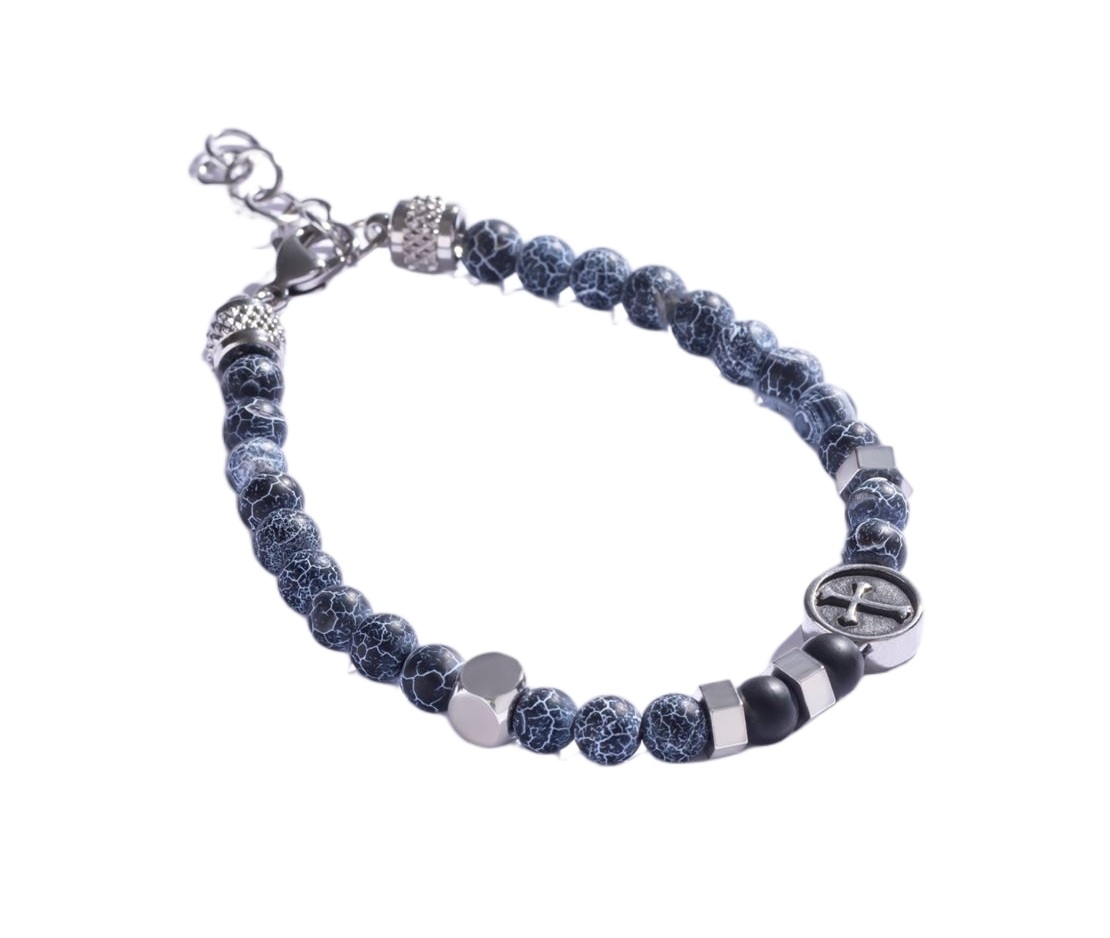 Marc Malone Korálkový náramok pre mužov s praskaným achátom MCGB5025