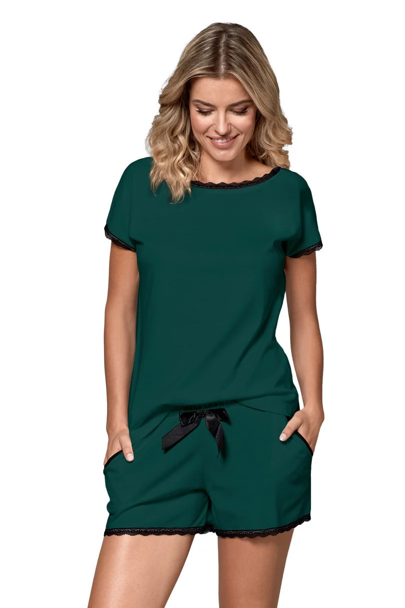 Krátke šortky Viscosa. Nohavice zakončené čipkou, bočné vrecká v páse s ozdobnou saténovou mašľou.Zloženie: 70% viskóza, 8% elastan, 8% ostatné vlákna .